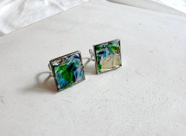 ガラスの欠片をレジンで閉じ込めました。 当店の商品は全て一点ものです。 ┈┈┈┈┈┈┈┈┈┈┈┈┈┈┈┈┈┈ サイズ : 1*1cmほど 素材 : ステンレス304 ┈┈┈┈┈┈┈┈┈┈┈┈┈┈┈┈┈┈ ☑︎ アクセサリーパーツは金属アレルギー対応のものを使用していますが、必ずしもすべての方に100%アレルギーが出ないと保証するものではございませんので、あらかじめご注意ください。 ☑︎ ご購入にあたって必ずトップページの必読をお読み願います。